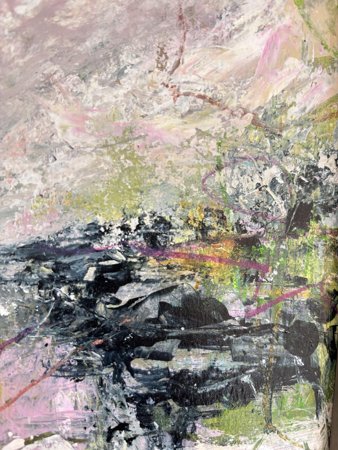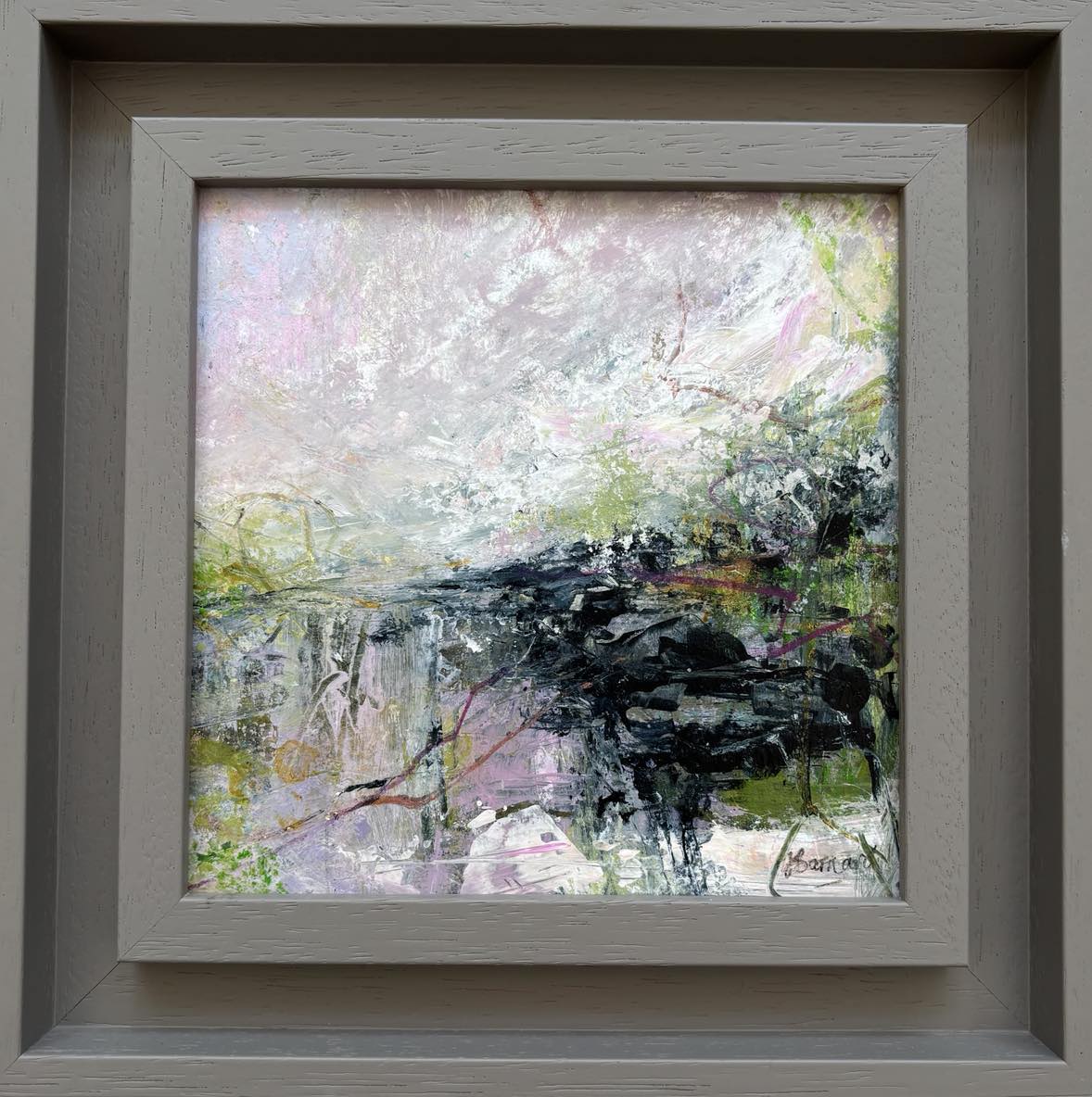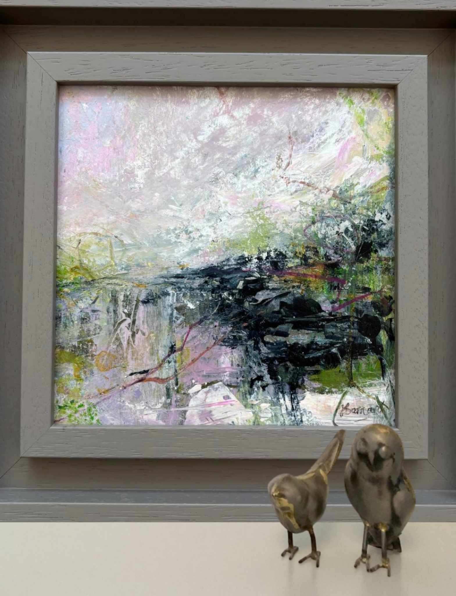 Mixed media on paper, varnished and set within a beautiful mushroom grey St Ives frame.